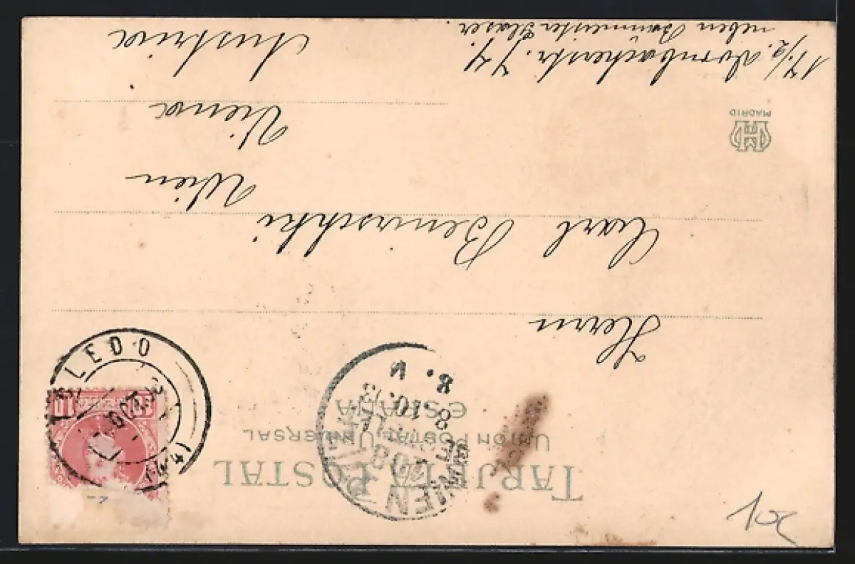 alte Ansichtskarte, gelaufen, Briefmarke entfernt, guter Zustand