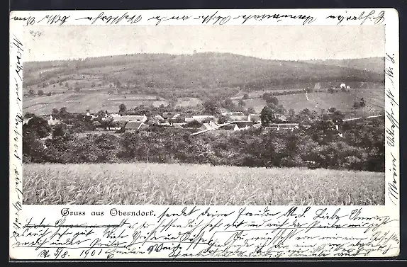 AK Traismauer, Gruss aus Oberndorf, Gesamtansicht von einem Getreidefeld aus