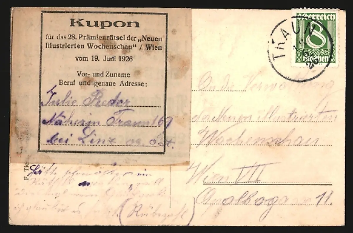 gelaufen 1926, rückseitig Klebe- und Papierreste, guter Zustand
