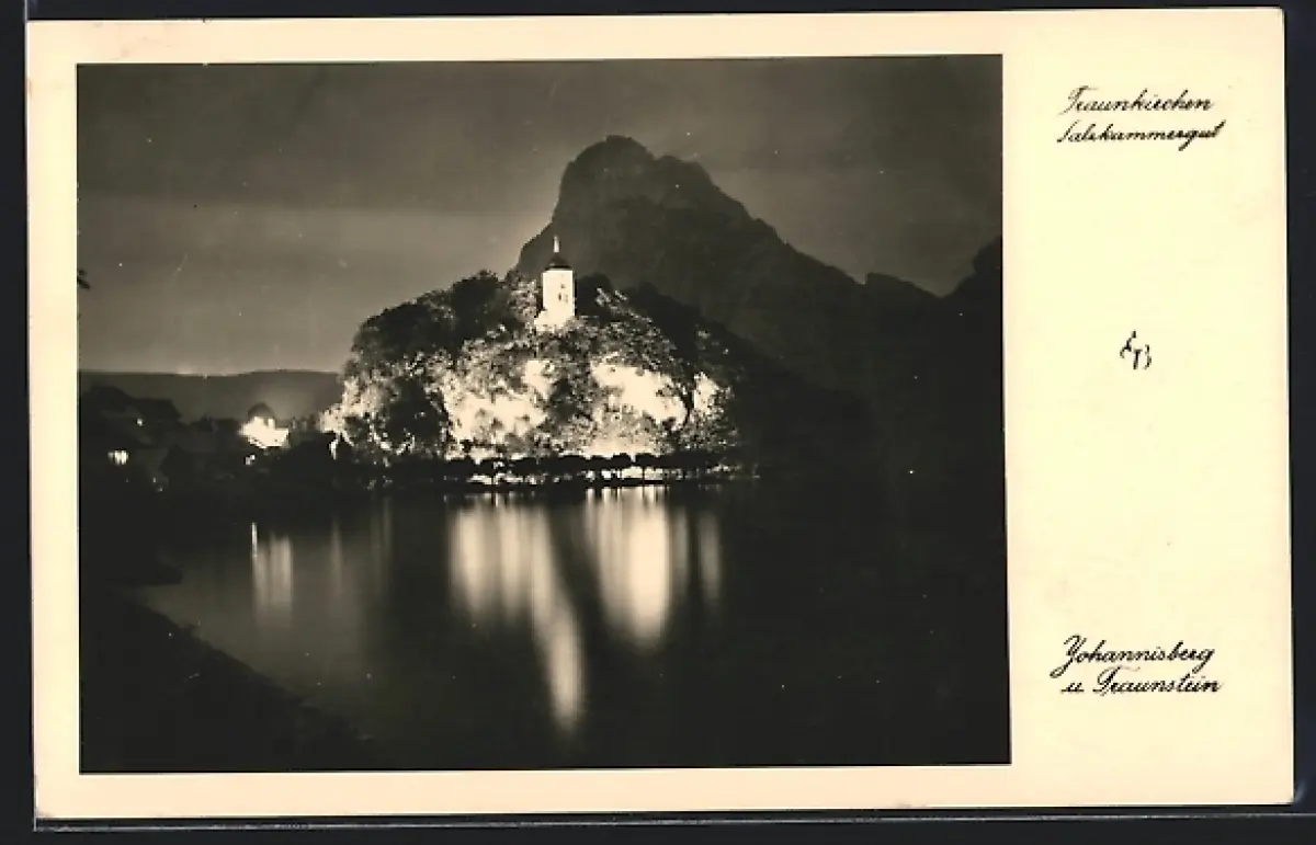 AK Traunkirchen, Salzkammergut, Johannisberg und Traunstein bei Nacht