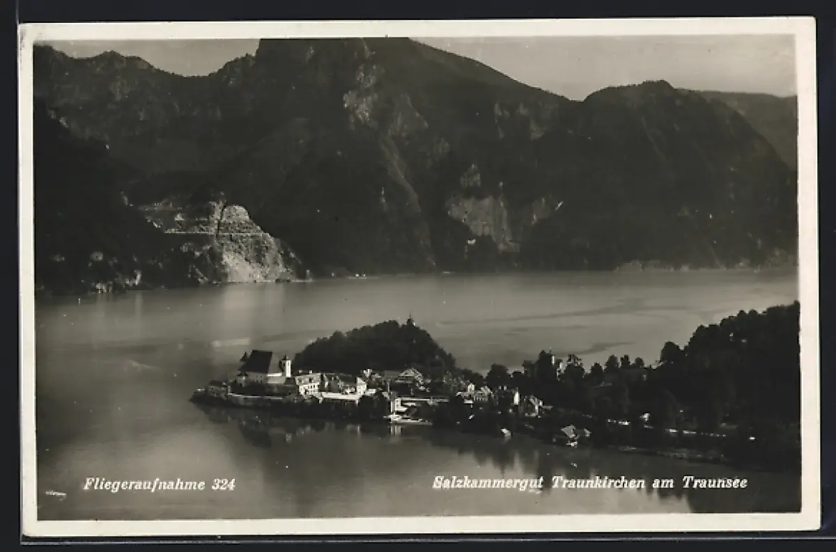 AK Traunkirchen am Traunsee, Salzkammergut, Teilansicht, Fliegeraufnahme