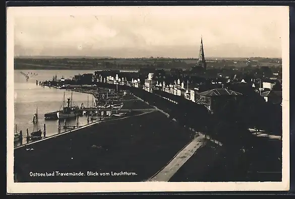 AK Travemünde, Ostseebad, Blick vom Leuchtturm auf den Ort