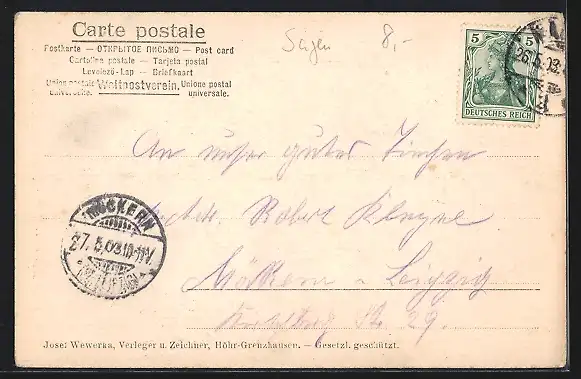 alte Ansichtskarte, gelaufen 1903, Ecken bestoßen, guter Zustand