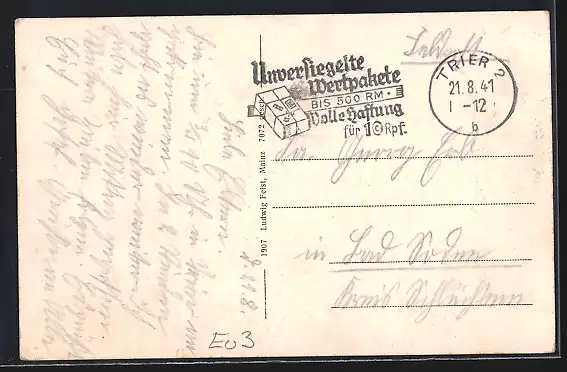 alte Ansichtskarte, gelaufen 1941, Bugspur li., guter Zustand