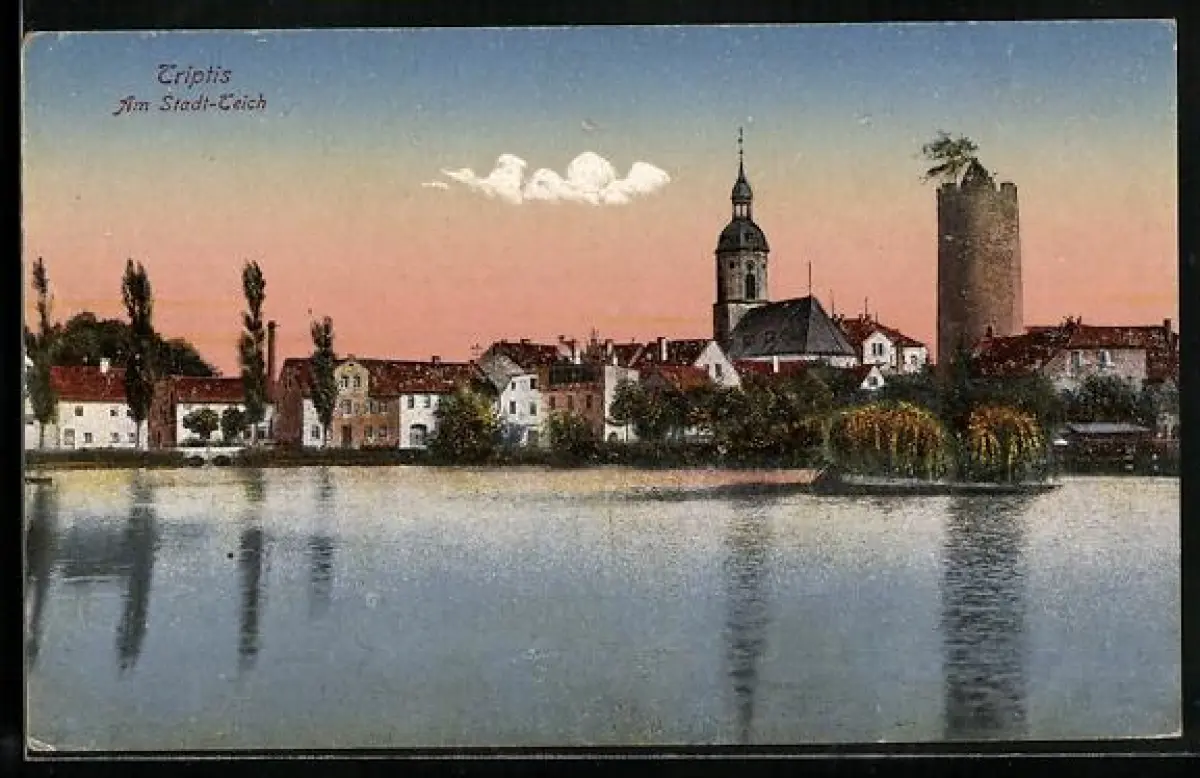 AK Triptis, Am Stadt-Teich, Ortspanorama