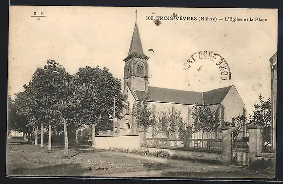 AK Trois-Vèvres /Nièvre, L`Eglise et la Place