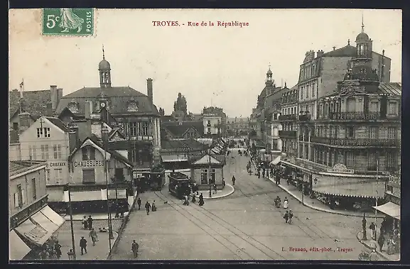 AK Troyes, Rue de la Republique, Strassenbahn