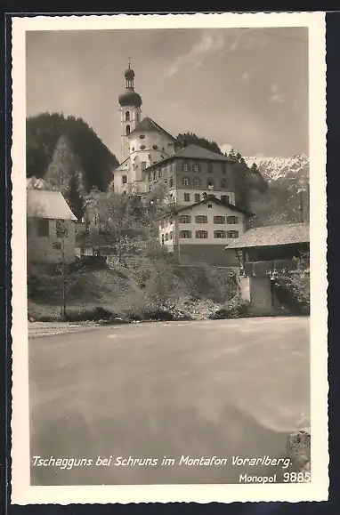 AK Tschagguns bei Schruns, Ortsansicht mit Kirche