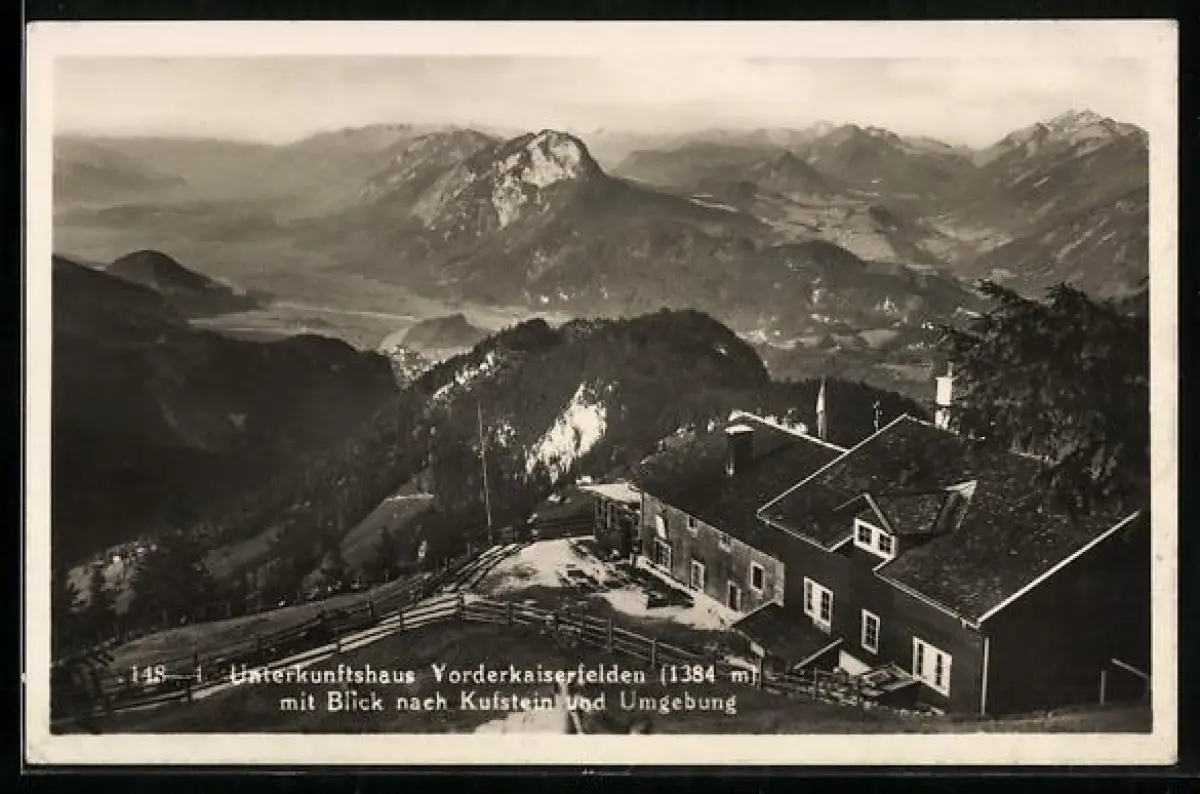 AK Unterkunftshaus Vorderkaiserfelden mit Blick nach Kufstein und Umgebung