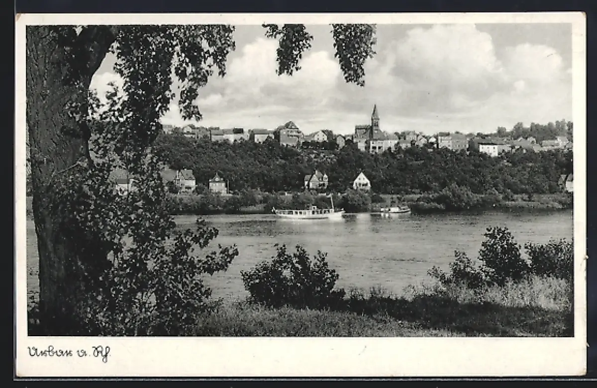 AK Urbar a. Rh., Uferpartie mit Schiffen
