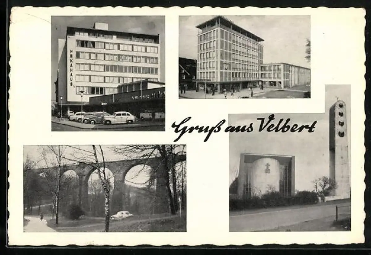 AK Velbert, Hakahaus, Viadukt, Kirche, Glockenturm