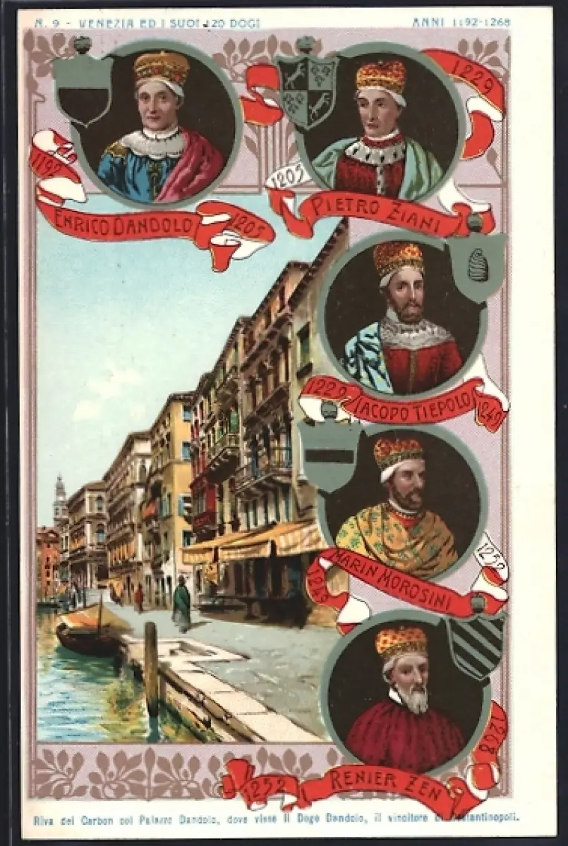 AK Venedig / Venezia, Venezia ed i suoi 120 Dogi, anni 1192-1268, Enrico Dandolo, Pietro Ziani u. a.