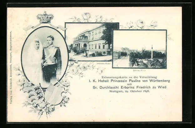 AK Vermählung von Prinzessin Pauline von Württemberg mit Erbprinz Friedrich zu Wied mit Wilhelms-Palast