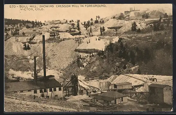 AK Victor, CO, Bull Hill, showing Cresson Mill in Foreground