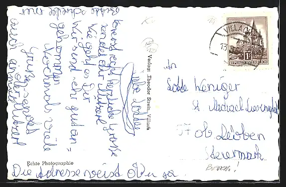 alte Ansichtskarte, gelaufen 1964, Eckknick u. Einriss re. oben, guter Zustand