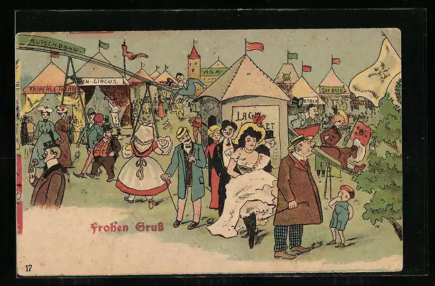 AK Volksfest, Rutschbahn, Kasperle Theater und viele weiter Zelte mit Attraktionen