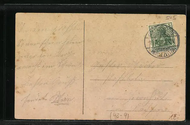 alte Ansichtskarte, gelaufen 1909, Eckknicke re. und li., guter Zustand