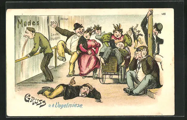 AK Volksfest auf der Vogelwiese, Betrunkene Männer und Fraue verlassen das Fest