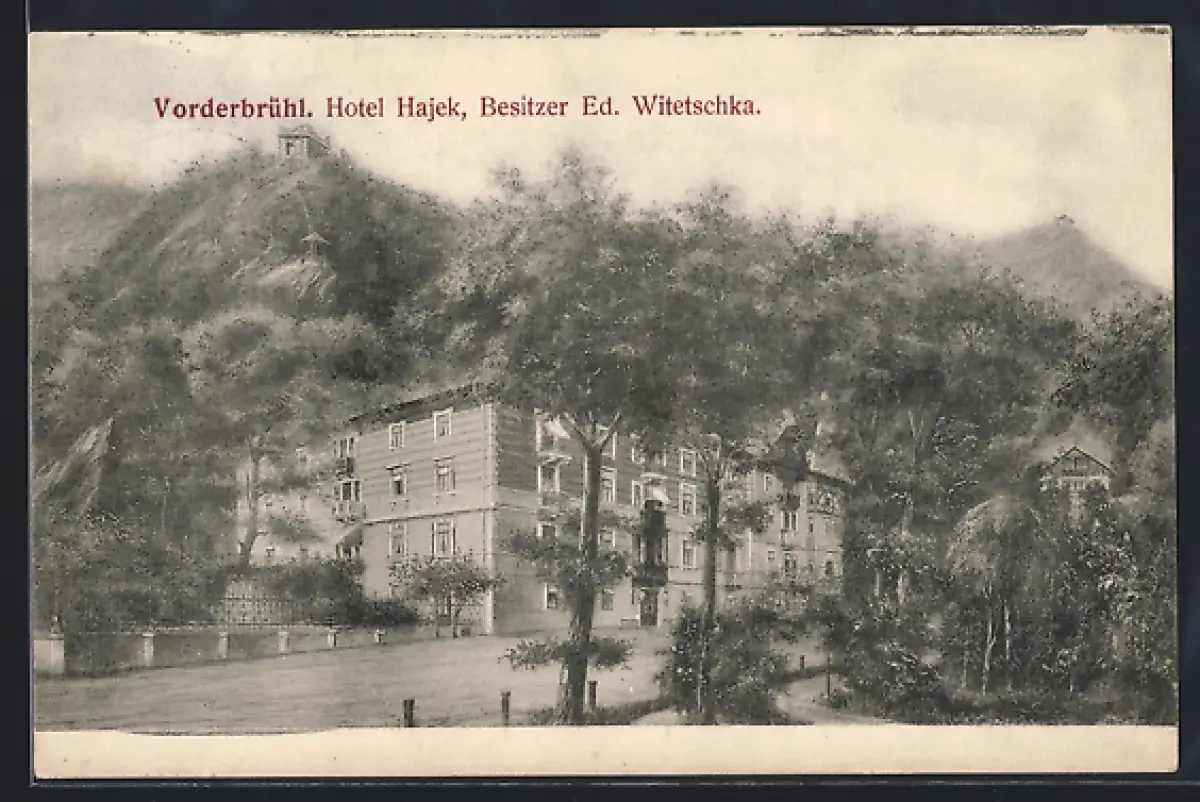 AK Vorderbrühl, Hotel Hajek mit Strassenpartie