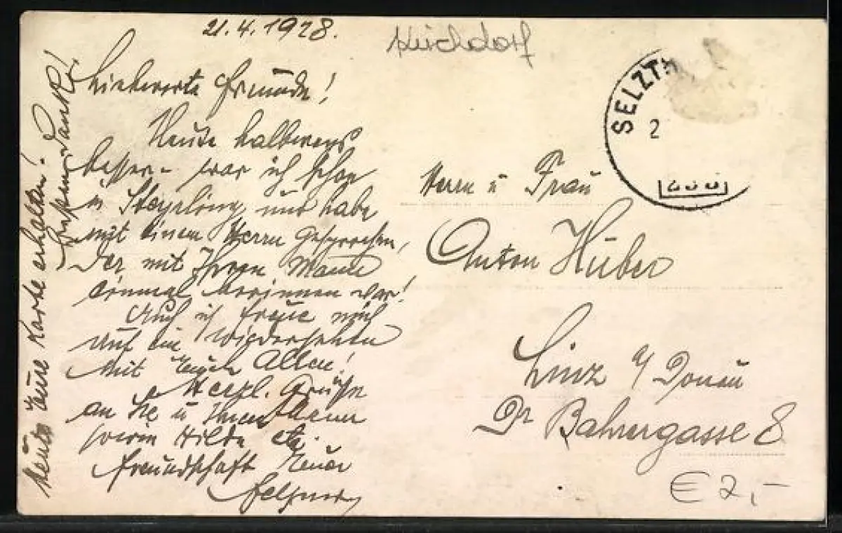 alte Ansichtskarte, gelaufen 1928, Briefmarke entfernt, guter Zustand