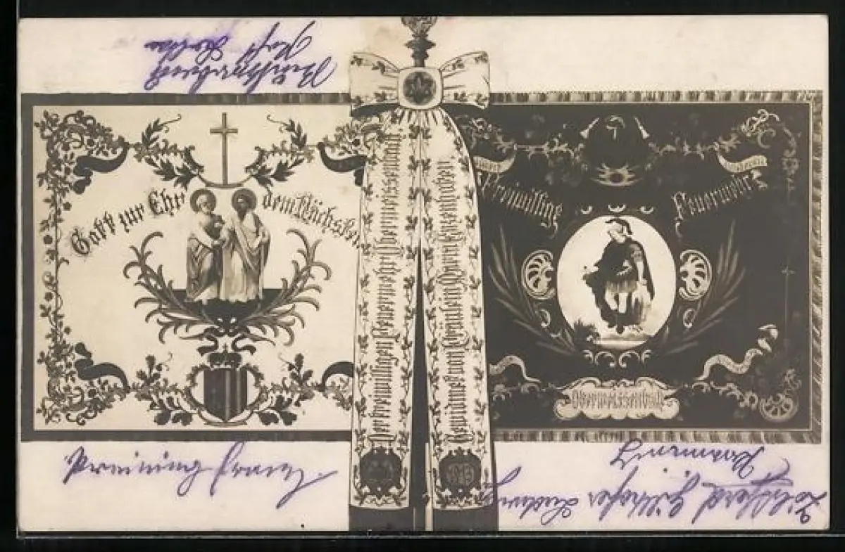 AK Vorderweissenbach, Fahnen der freiwilligen Feuerwehr Oberweissenbach