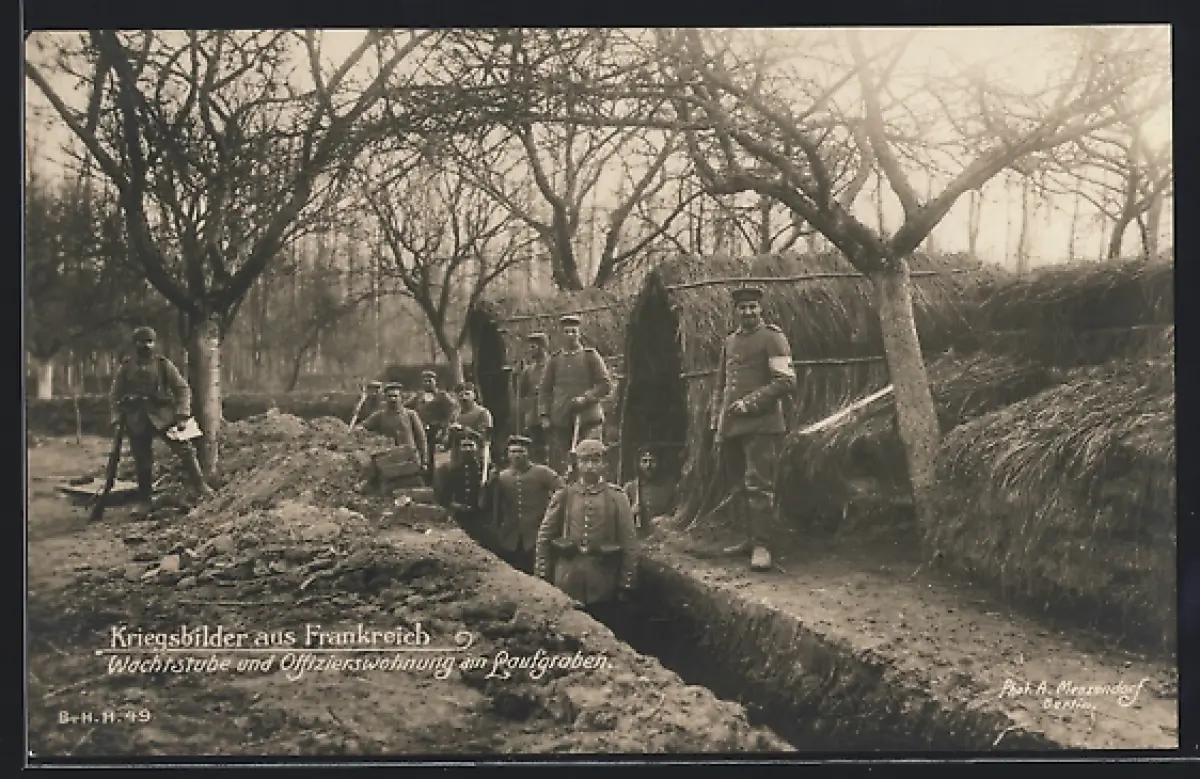 AK Wachstube u. Offizierswohnung am Laufgraben, Grabenbau, Kriegsbilder aus Frankreich