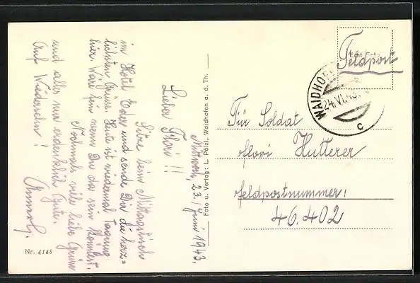 alte Ansichtskarte, gelaufen 1943, guter Zustand