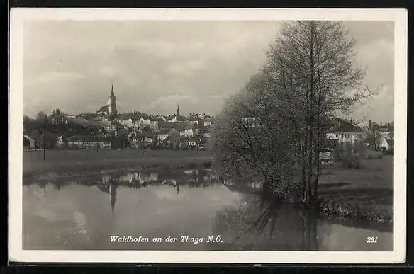 AK Waidhofen a. d. Thaya, Ortsansicht von einem Gewässer aus