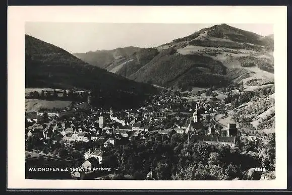 AK Waidhofen a. d. Ybbs, Ortsansicht mit Kirche vom Arzberg aus