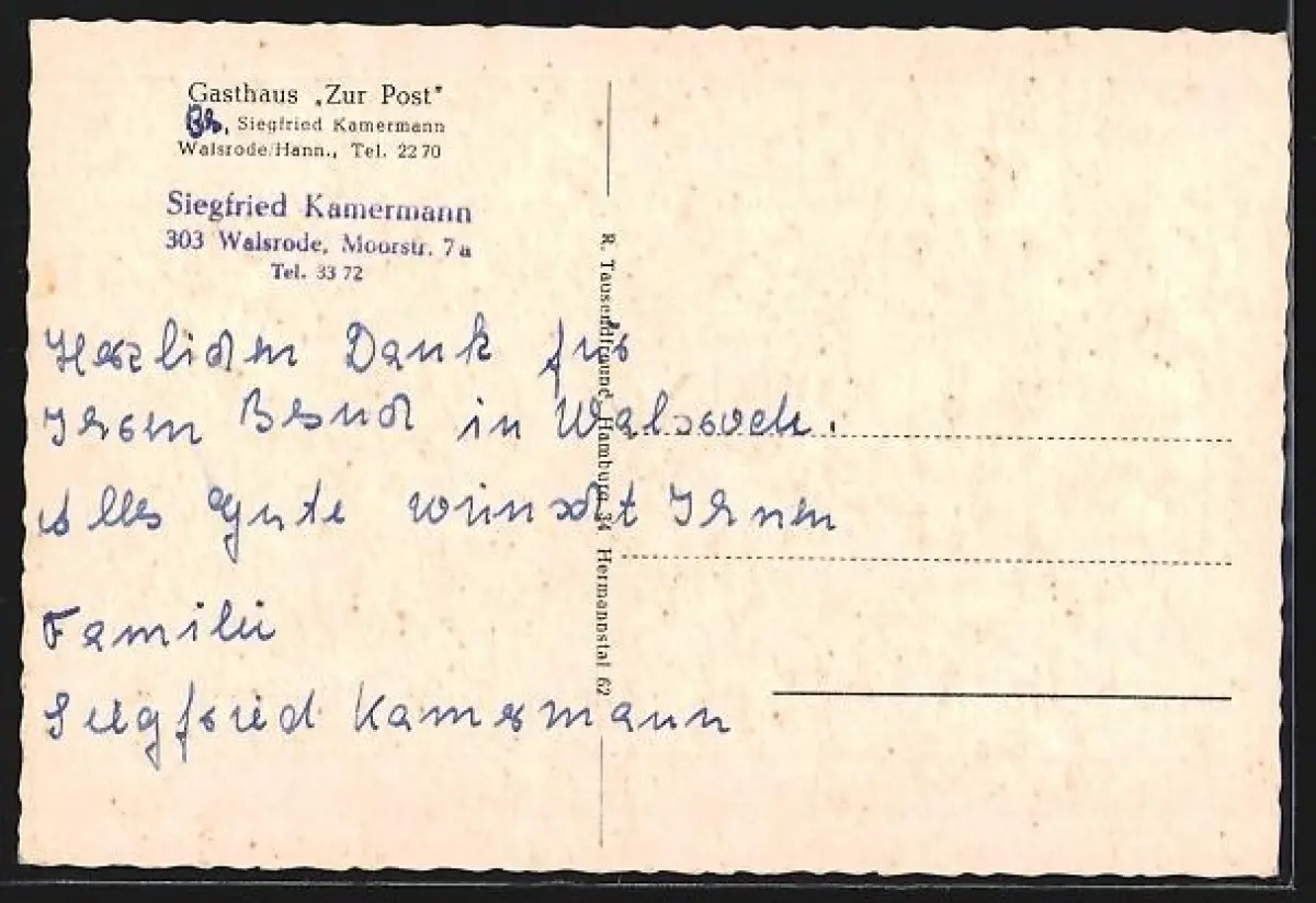 AK Walsrode, Gasthaus zur Post S. Kamermann, Innenansichten, Fassade