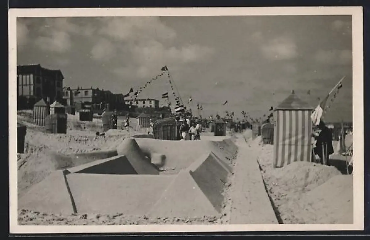 AK Wangerooge, Strand mit Strandkörben und Sandburg
