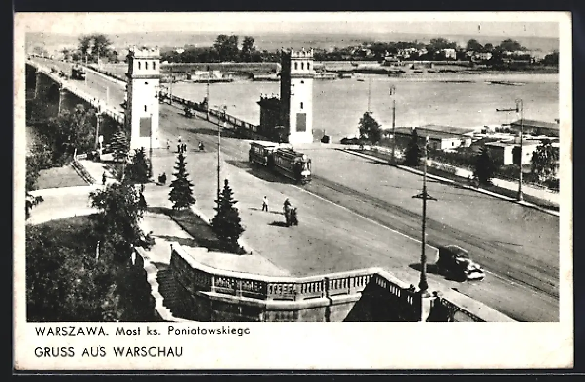 AK Warschau-Warszawa, Most nowy, Neue Brücke mit Strassenbahn u. Auto
