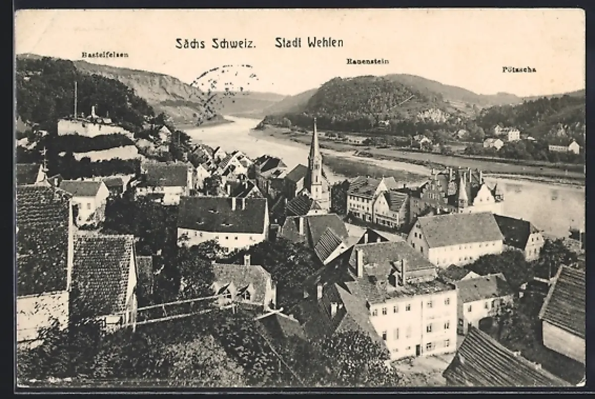 AK Wehlen / Sächs. Schweiz, Basteifelsen, Rauenstein, Ortsansicht