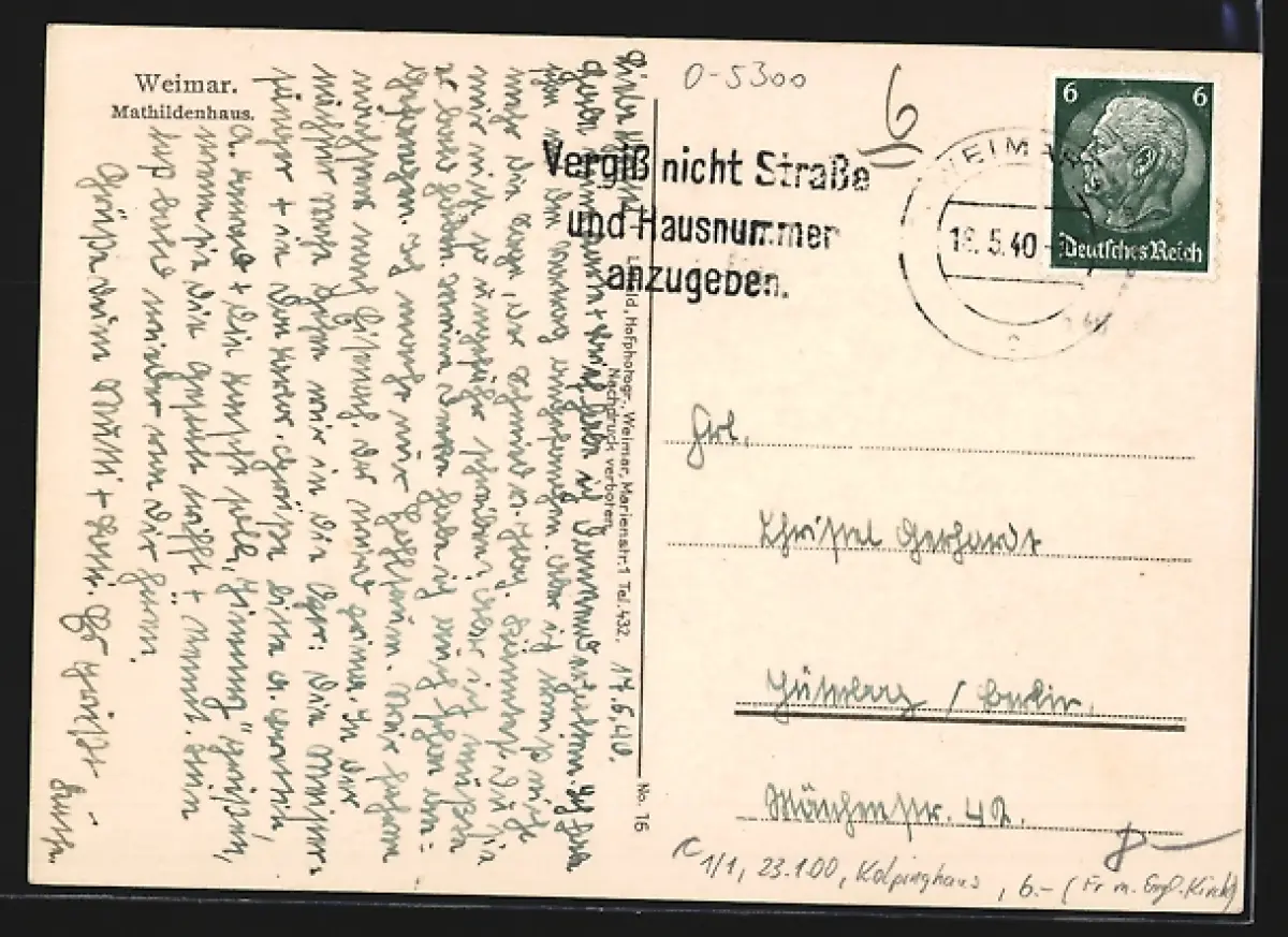 alte Ansichtskarte, gelaufen 1940, guter Zustand