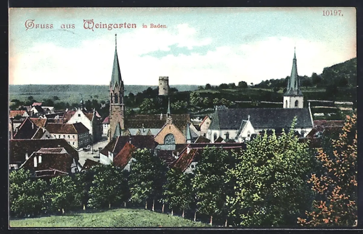 AK Weingarten in Baden, Teilansicht mit Kirche und Strassenpartie