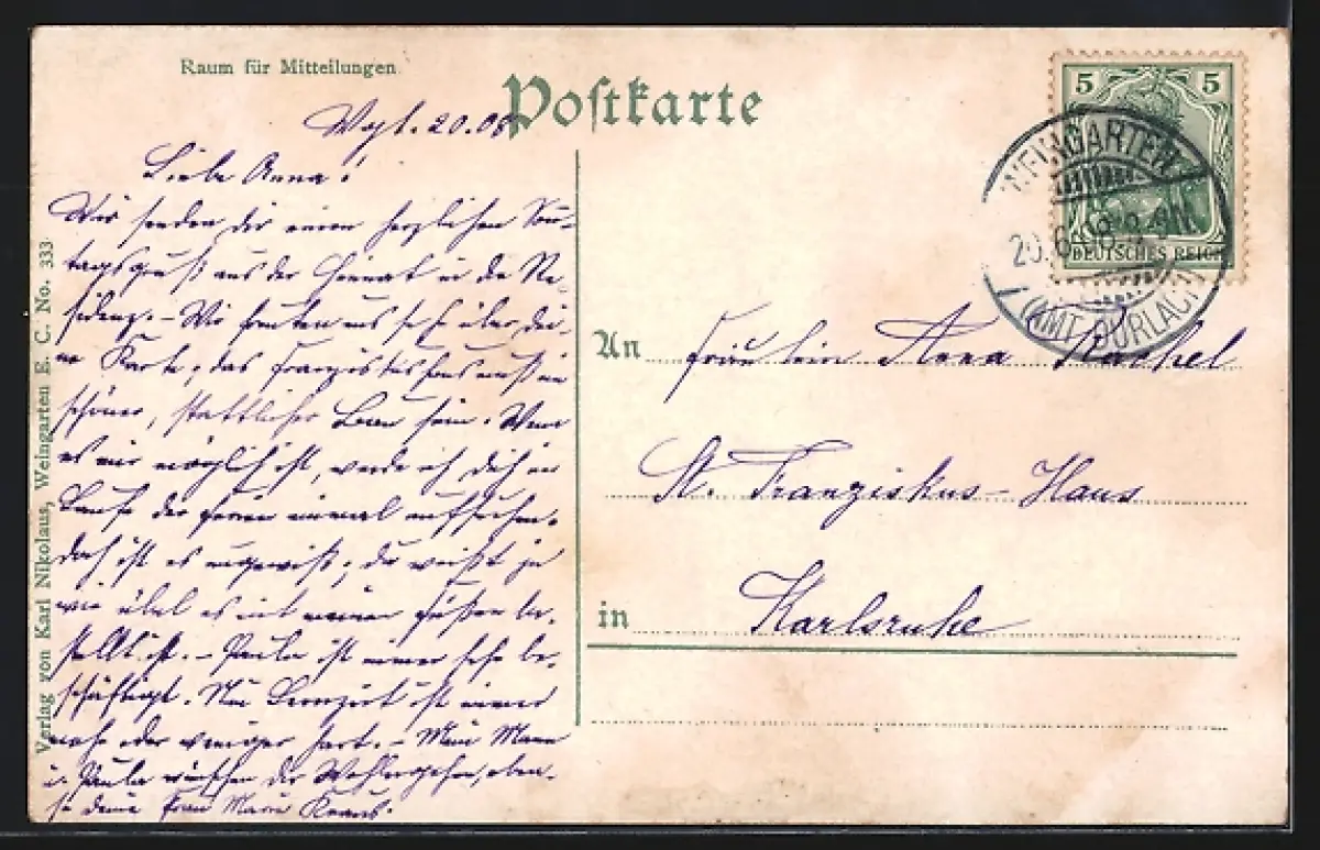 alte Ansichtskarte, gelaufen 1908, Albumspuren, guter Zustand