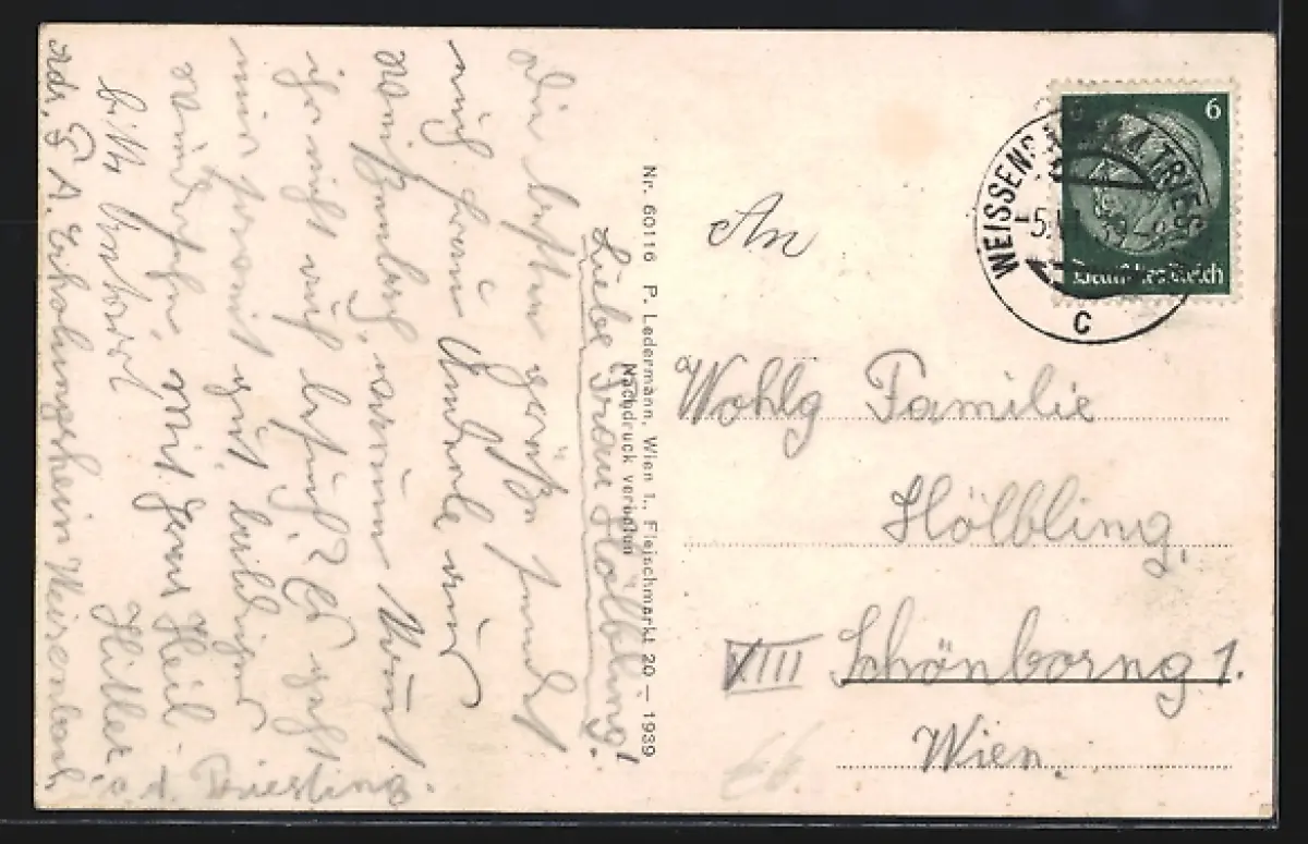 alte Ansichtskarte, gelaufen 1939, Eckknick li. oben, guter Zustand