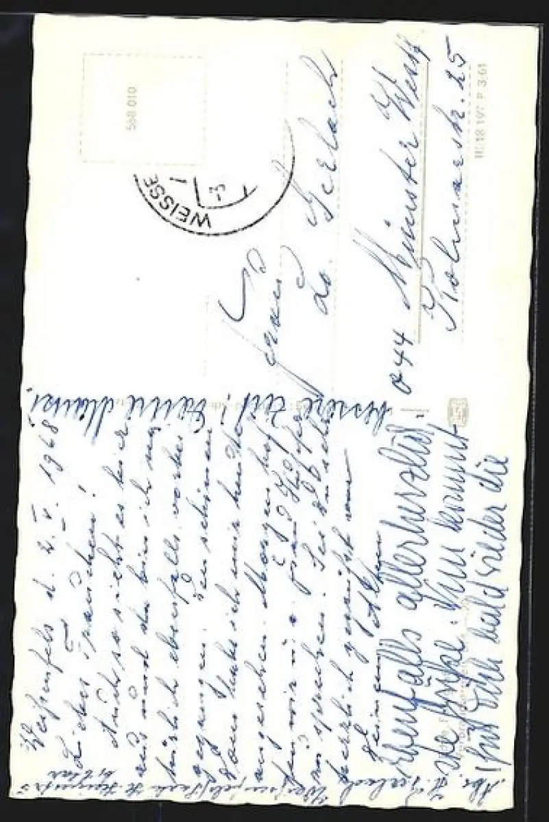 gelaufen, Briefmarke entfernt, leichte Bugspur unten mittig, guter Zustand
