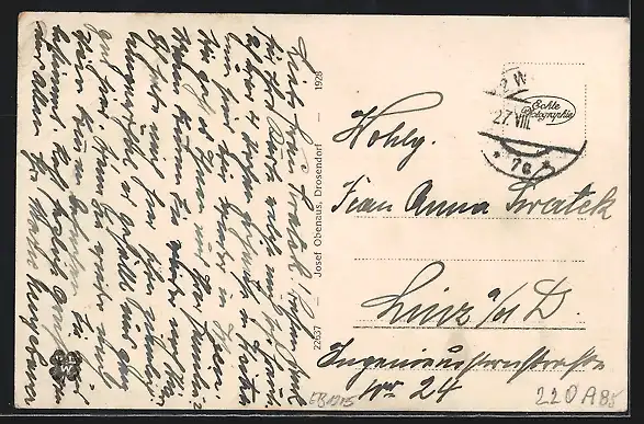 alte Ansichtskarte, gelaufen, Briefmarke entfernt, Bugspur diag. oben re., guter Zustand