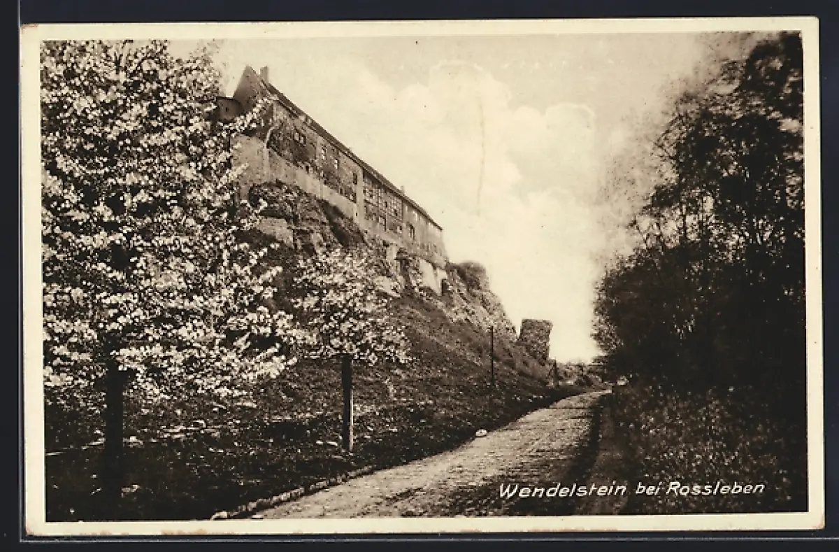AK Wendelstein / Rossleben, Blick zum Ort mit blühenden Bäumen