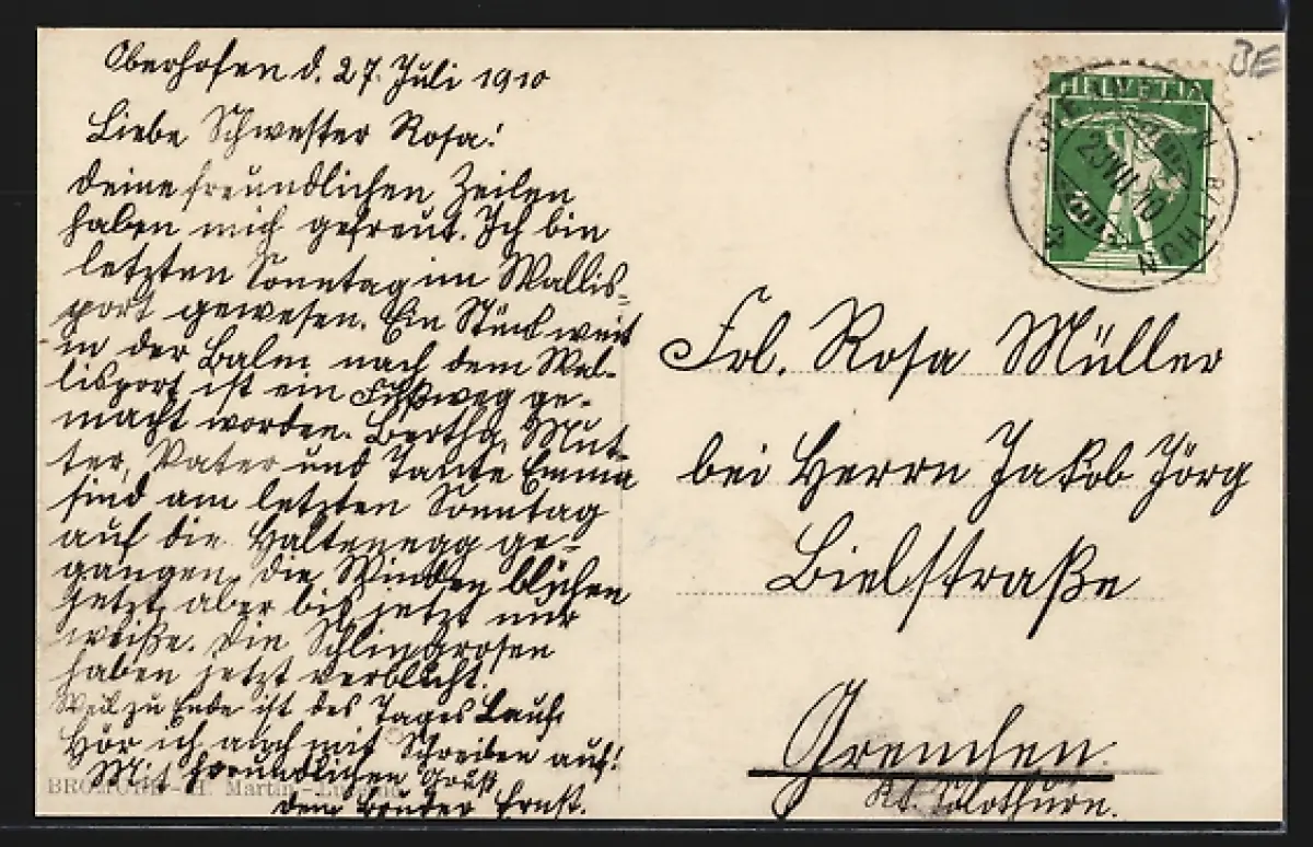 gelaufen 1910, Eckknick li. oben, guter Zustand