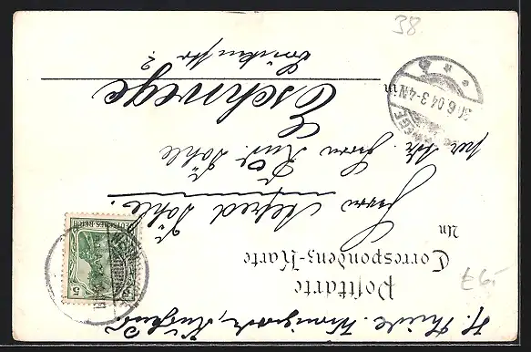 alte Ansichtskarte, gelaufen 1904, Eckknick li. unten, guter Zustand
