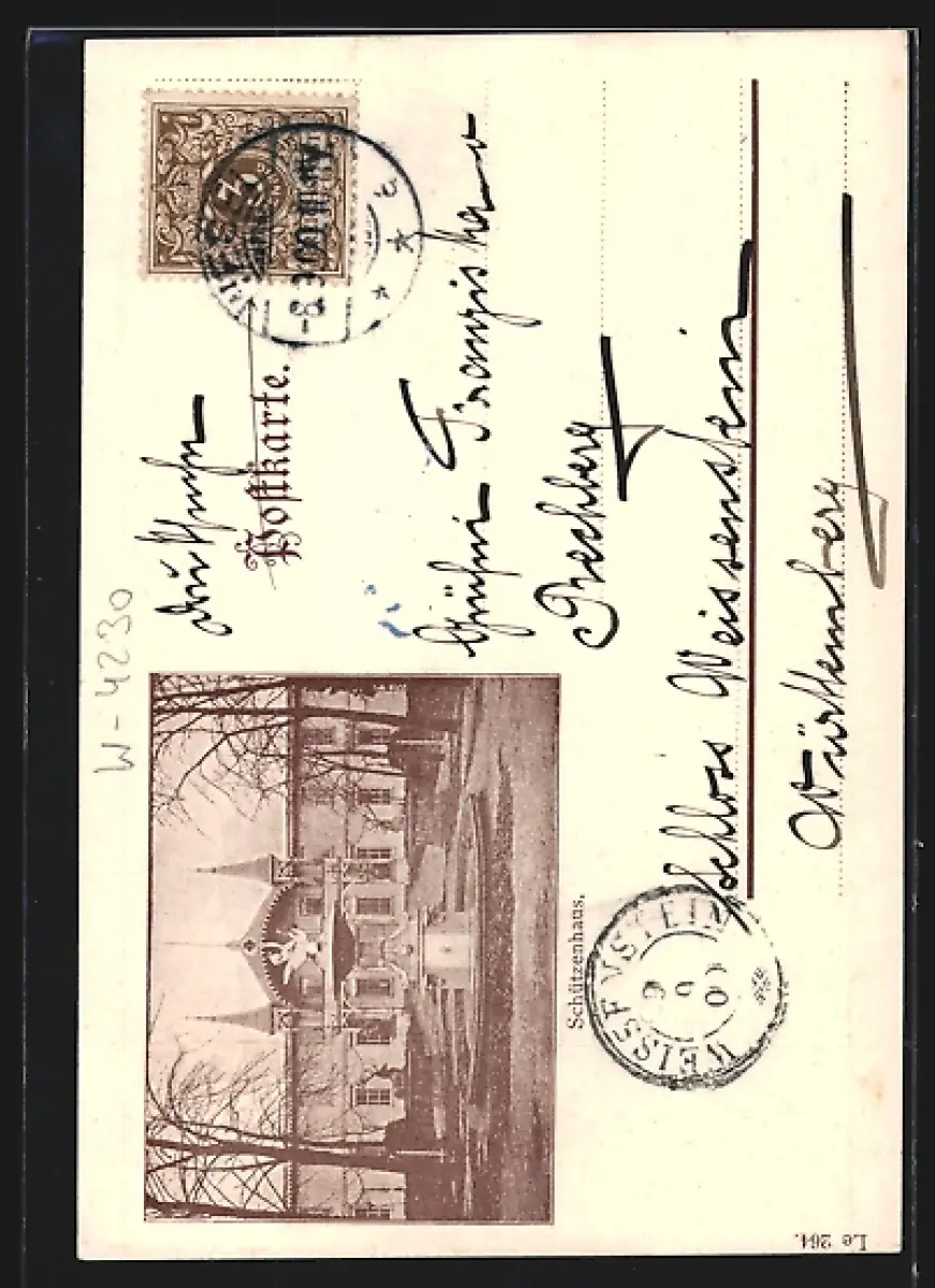 alte Ansichtskarte, gelaufen 1900, Stempelspur, guter Zustand