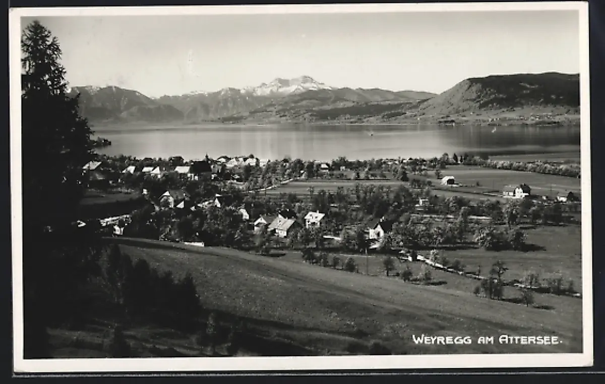 AK Weyregg am Attersee, Ortsansicht aus der Vogelschau