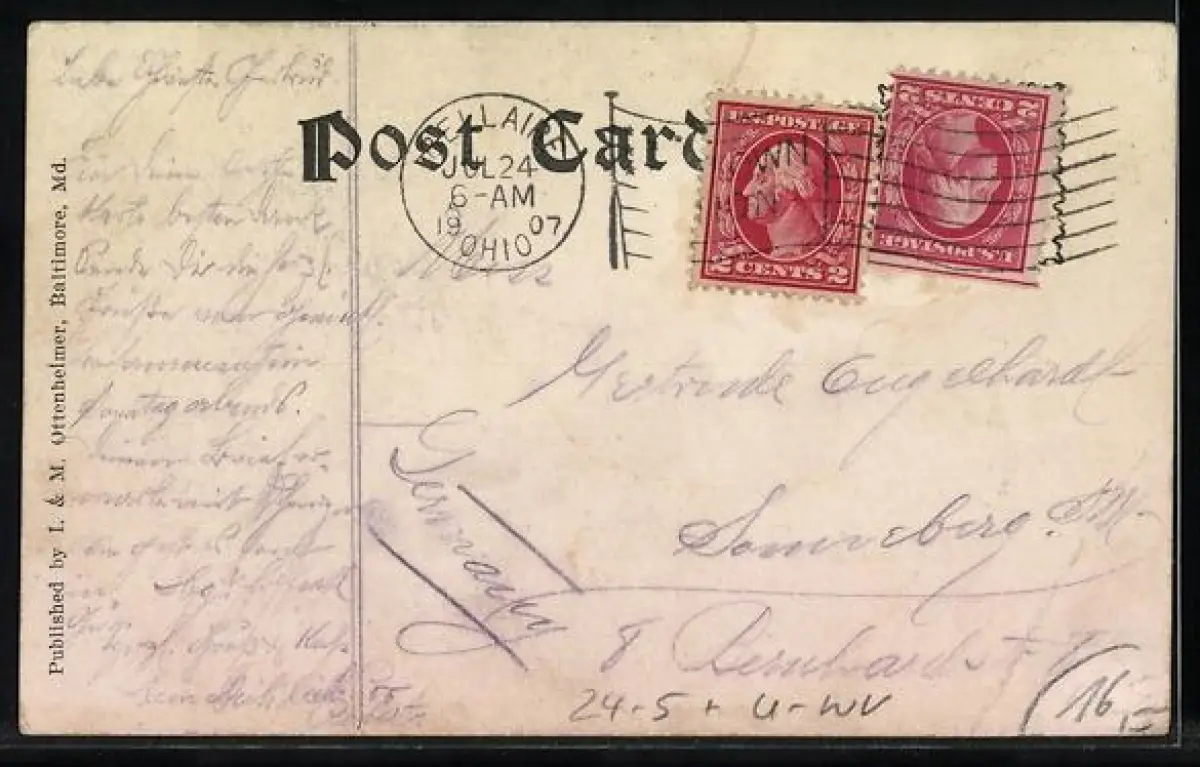 alte Ansichtskarte, gelaufen 1907, Eckknick li. unten, guter Zustand