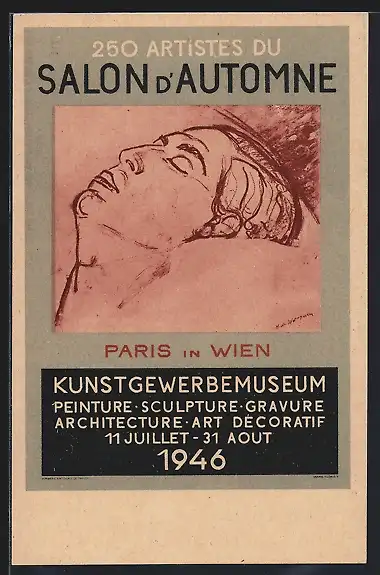 AK Wien, 250 Artistes du Salon d`Automne 1946, Mann liegt auf einem Kissen