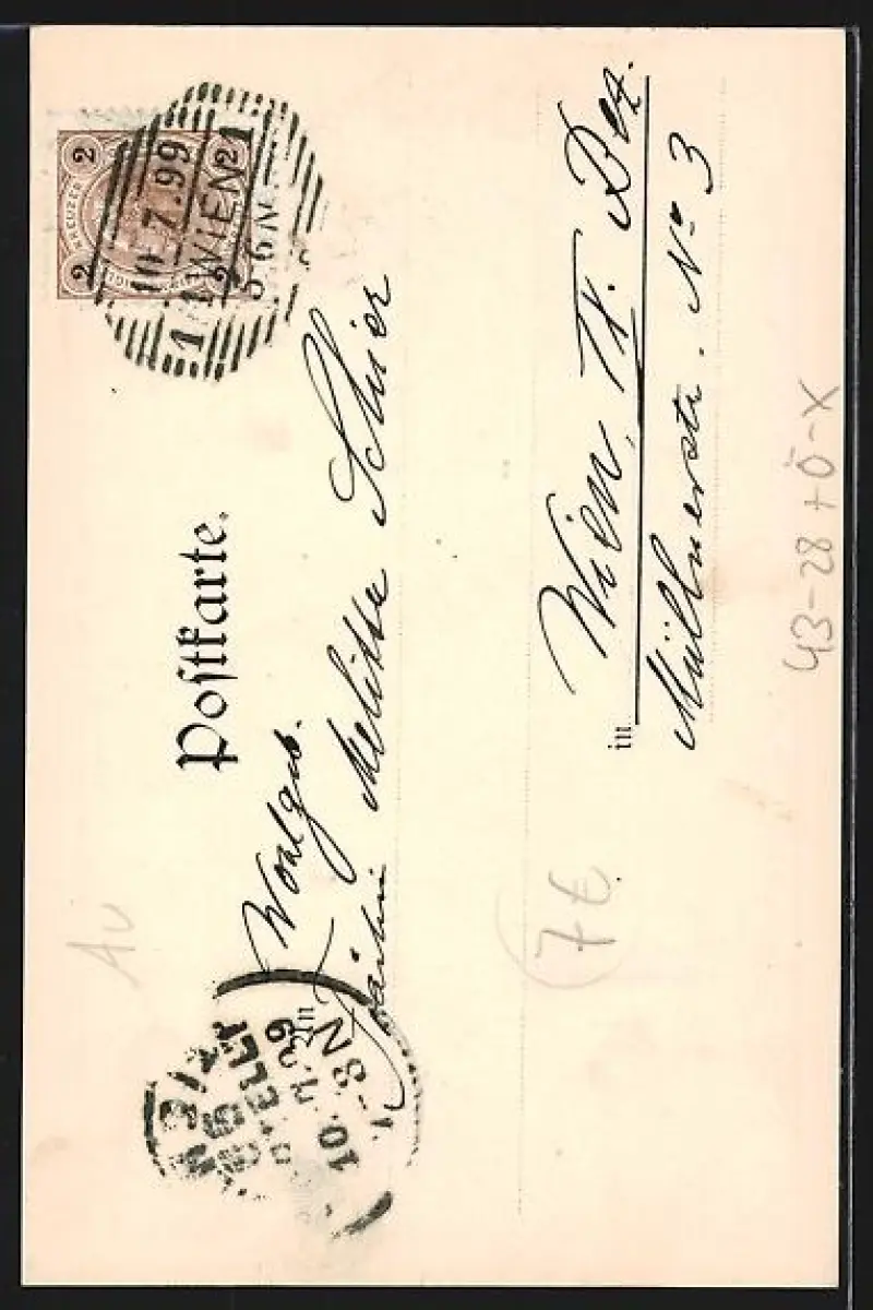 alte Ansichtskarte, gelaufen 1899, Stempelspur, guter Zustand