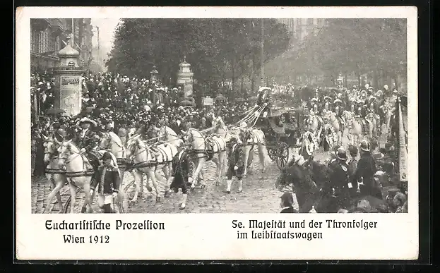 AK Wien, Eucharistische Prozession 1912, Kaiser Franz Josef I. von Österreich im Leibstaatswagen