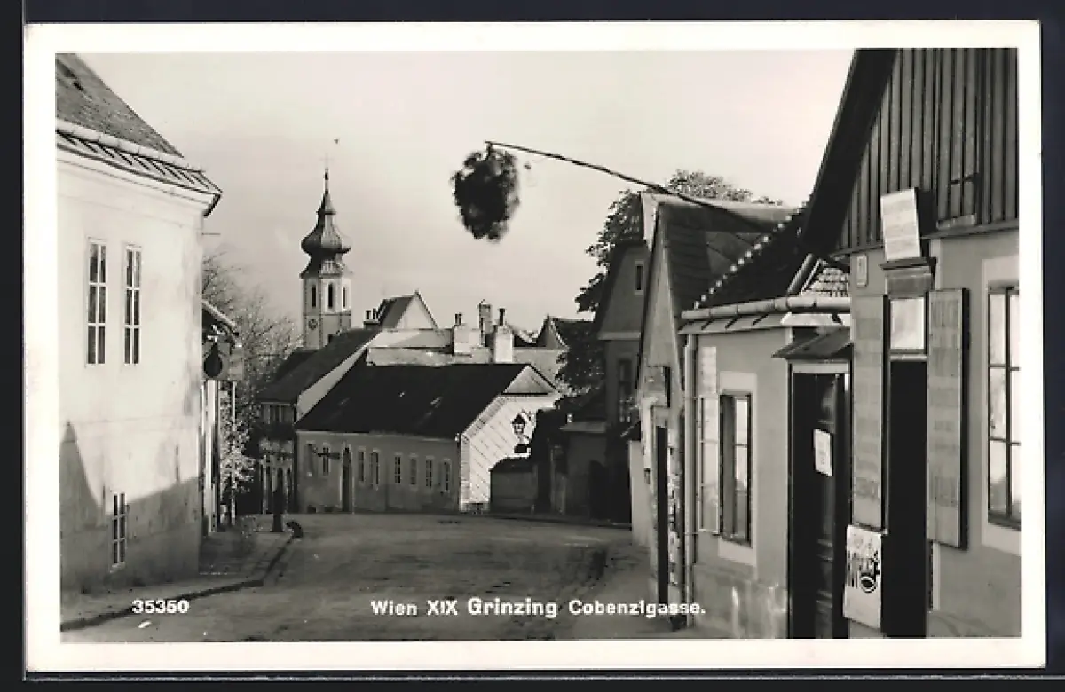 AK Wien-Grinzing, Cobenzlgasse mit Blick zur Kirche