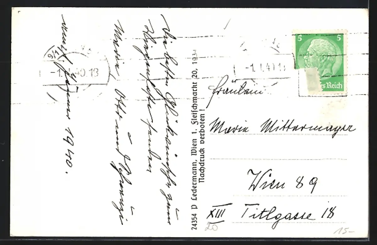 alte Ansichtskarte, gelaufen 1940, Briefmarke entfernt, guter Zustand